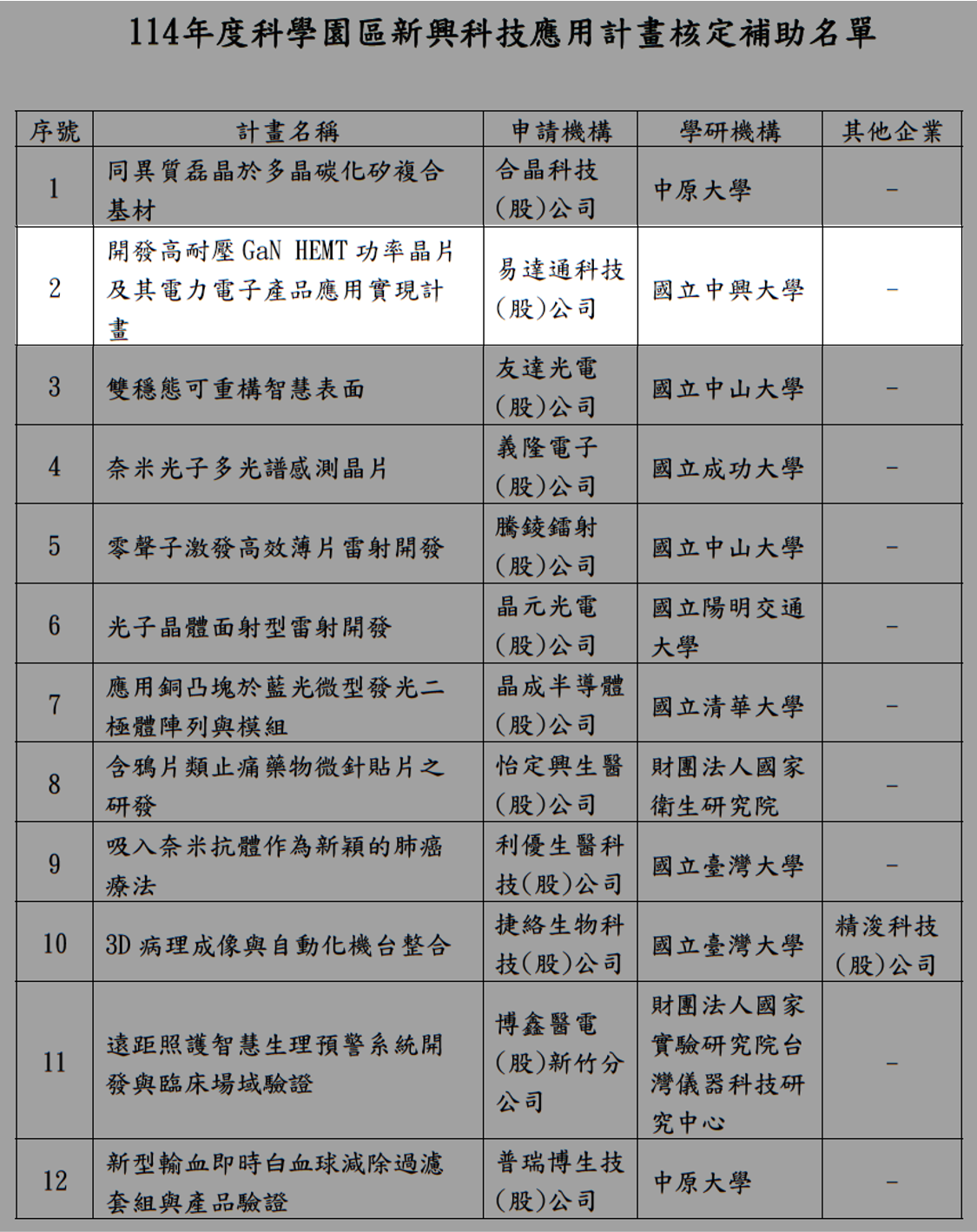 易達通獲得科管局114年度「科學園區新興科技應用計畫」核定補助